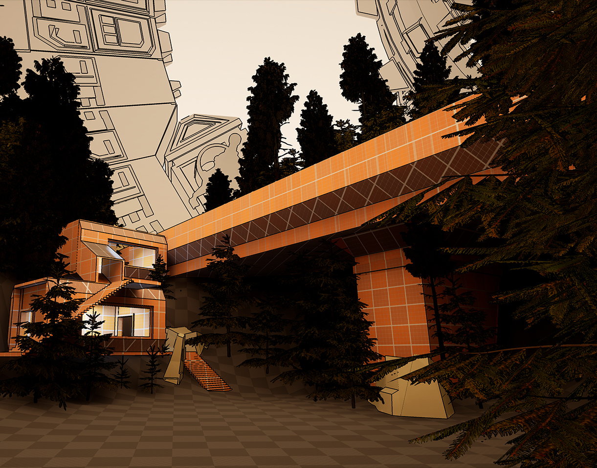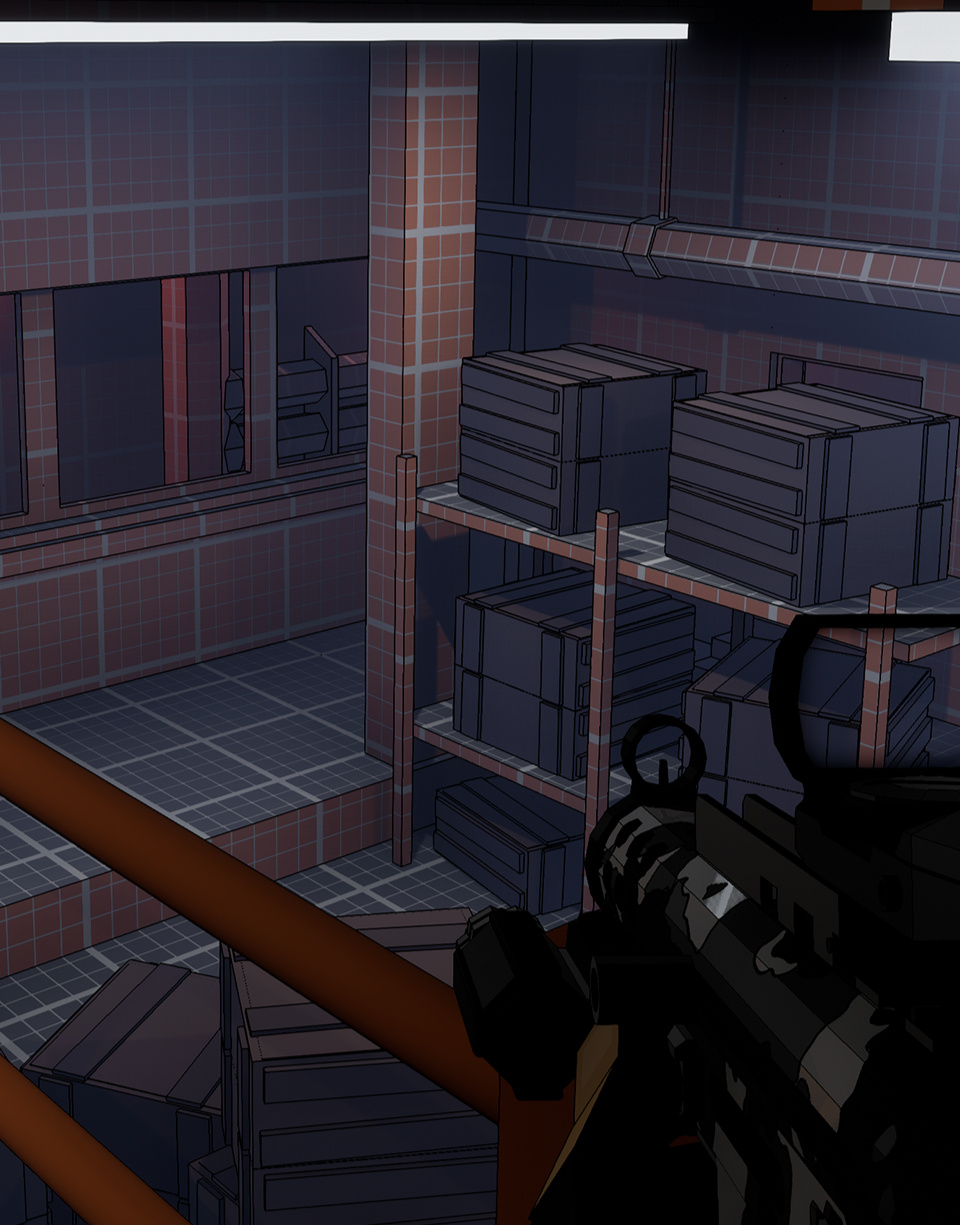 · Vary the gameplay through space.· Create two different bomb sites:· Integrate long lines in partitioned spaces.· Create a logical progression in the game environment.