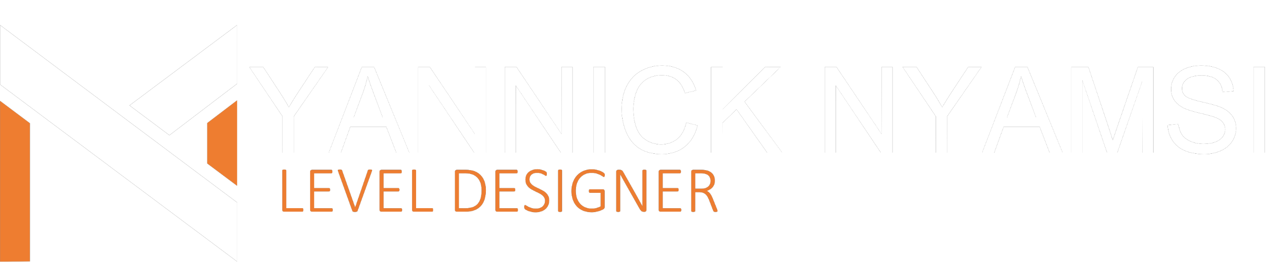 Hello ! My name is Yannick Nyamsi, welcome here!You will find on this website my portfolio where I present you the games I worked on and the different projects I made. You will also find some gamejam projects.I worked on multiple projects at several studios, including Old skull Games (Lyon, France) and Magic Design Studios (Montpellier, France). Let me share with you my passion for level design!Thanks for coming, I hope you'll enjoy my work!